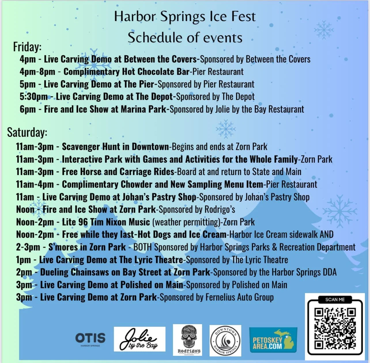 The Ice Fest is brought to you by the Harbor Springs DDA. This year’s event will be held Friday and Saturday, February 7 and 8. Last year’s Fest featured nearly 50 ice sculptures throughout Downtown Harbor Springs, along with the Dueling Chainsaws Show. Watch for as many or more sculptures in 2025.